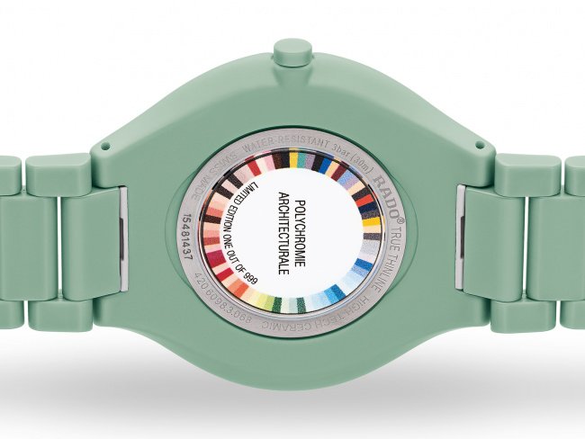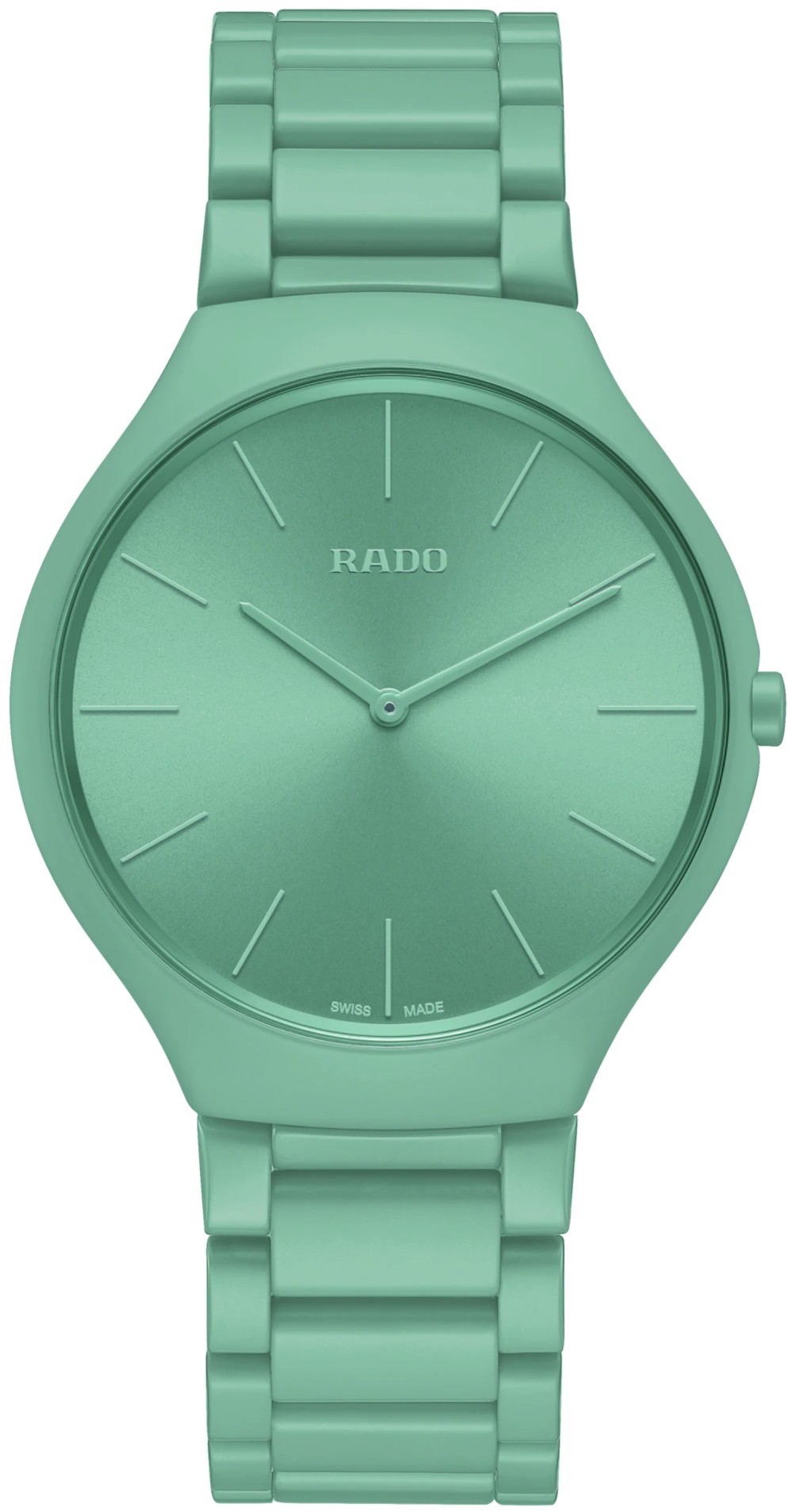 Rado True Thinline Les Couleurs™ English Green R27096662 jsou elegantní unisex hodinky vyrobené ze speciálního materiálu High-Tech Ceramic v zelené barvě v odstínu English Green. Díky tomuto materiálu jsou hodinky lehké, hypoalergenní a odolné vůči poškrábání. Ultratenké pouzdro hodinek má průměr 39 milimetrů, tloušťku pouhých 5 milimetrů a dýnko zdobené paletou všech 63 barev Les Couleurs™. Zelený číselník s efektem slunečního brusu je chráněn odolným safírovým sklem. Pohon hodinek zajišťuje švýcarský quartzový strojek R420. Hodinky disponují vodotěsností 3 ATM a jsou tedy odolné proti vlhkosti, dešti a při mytí rukou. Jedná se o limitovanou edici v počtu 999 kusů pro celý svět, která vzdává hold ikonickým barvám světoznámého architekta Le Corbusiera.
