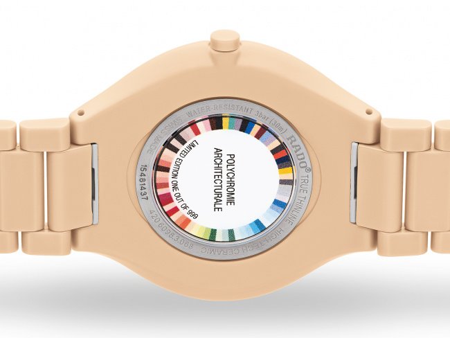Rado True Thinline Les Couleurs™ Pale Sienna R27097672 jsou elegantní unisex hodinky vyrobené ze speciálního materiálu High-Tech Ceramic v béžové barvě v odstínu Pale Sienna. Díky tomuto materiálu jsou hodinky lehké, hypoalergenní a odolné vůči poškrábání. Ultratenké pouzdro hodinek má průměr 39 milimetrů, tloušťku pouhých 5 milimetrů a dýnko zdobené paletou všech 63 barev Les Couleurs™. Béžový číselník s efektem slunečního brusu je chráněn odolným safírovým sklem. Pohon hodinek zajišťuje švýcarský quartzový strojek R420. Hodinky disponují vodotěsností 3 ATM a jsou tedy odolné proti vlhkosti, dešti a při mytí rukou. Jedná se o limitovanou edici v počtu 999 kusů pro celý svět, která vzdává hold ikonickým barvám světoznámého architekta Le Corbusiera.
