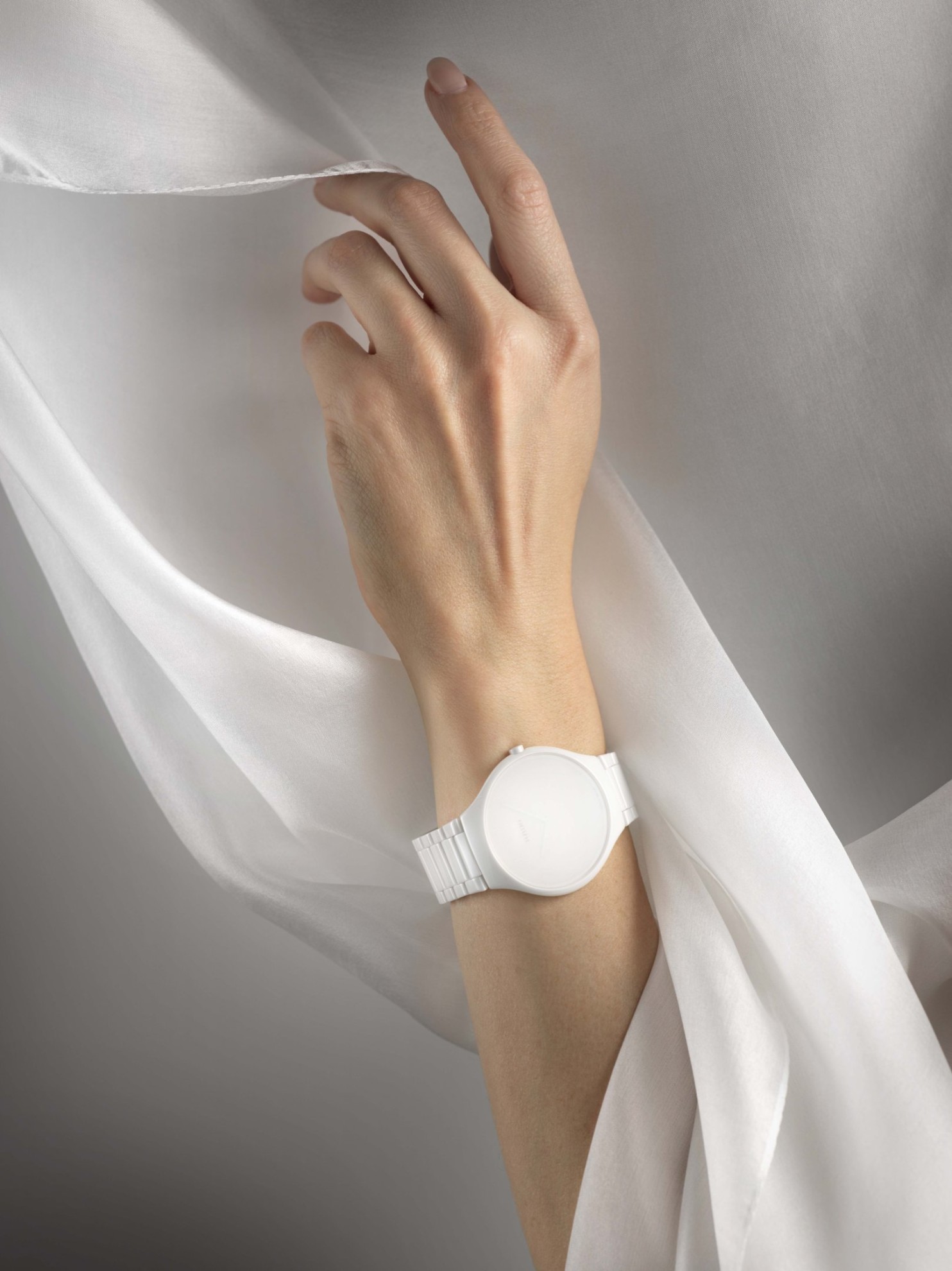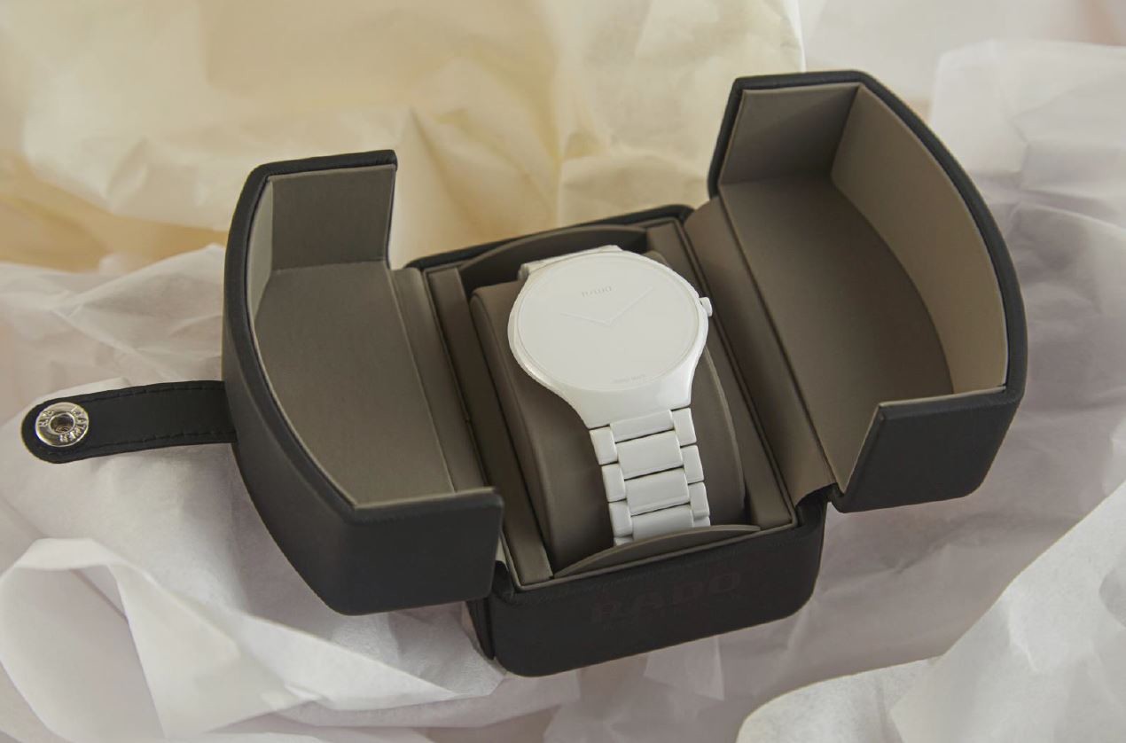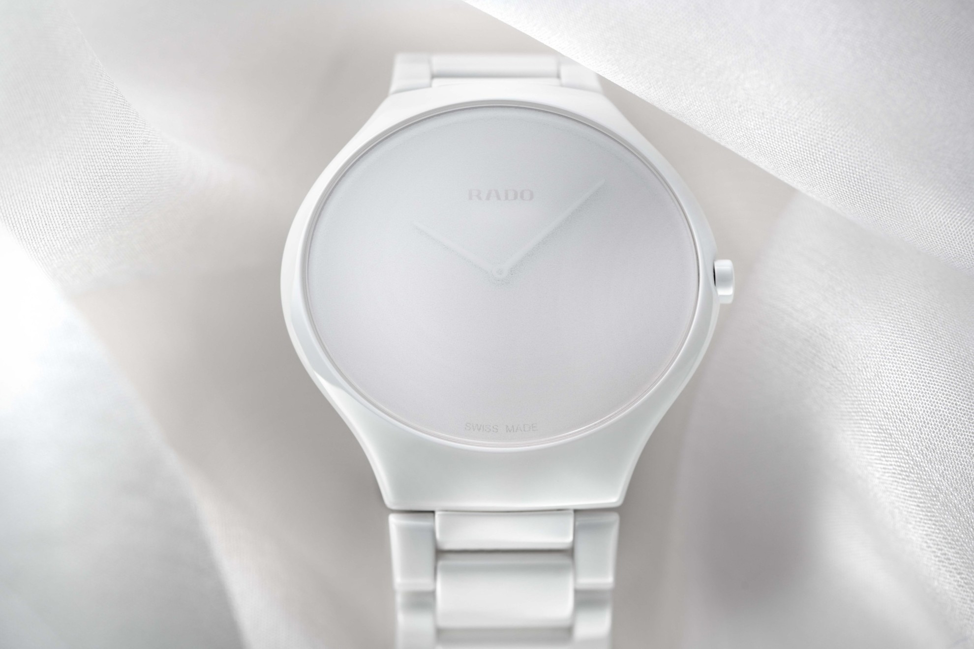 Rado True Thinline Stillness R27015012 jsou elegantní unisex hodinky vyrobené ze speciálního materiálu High-Tech Ceramic v bílé barvě. Díky tomuto materiálu jsou hodinky lehké, hypoalergenní a odolné vůči poškrábání. Ultratenké pouzdro hodinek má průměr 39 milimetrů a tloušťku pouhých 5 milimetrů. Bílý číselník ve velmi minimalistickém designu je chráněn odolným safírovým sklem. Pohon hodinek zajišťuje švýcarský quartzový strojek R420. Hodinky disponují vodotěsností 3 ATM a jsou tedy odolné proti vlhkosti, dešti a při mytí rukou. Tento model odrážející ducha moderní doby byl vytvořen ve spolupráci s Li Edelkoort, která se zabývá prognózou trendů.