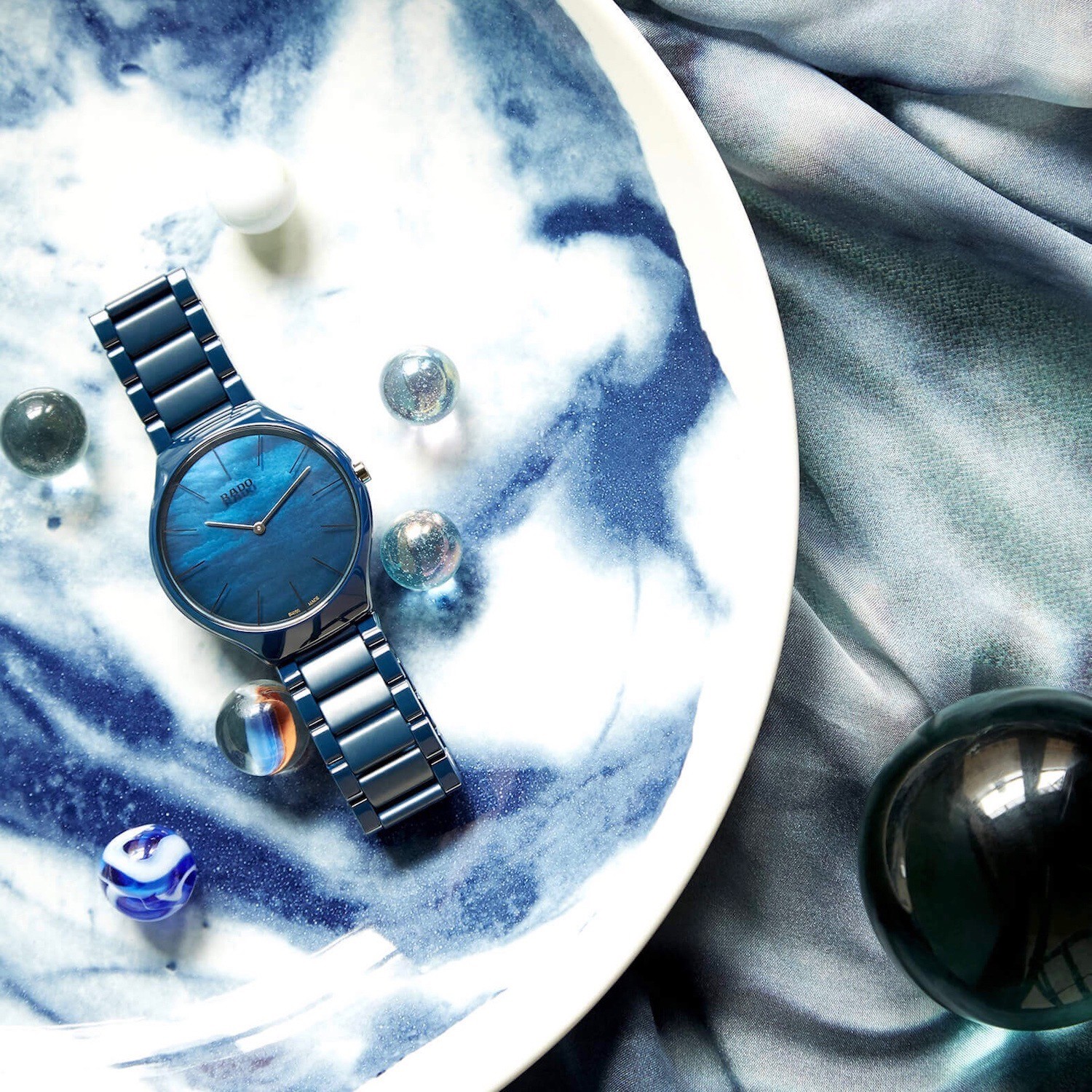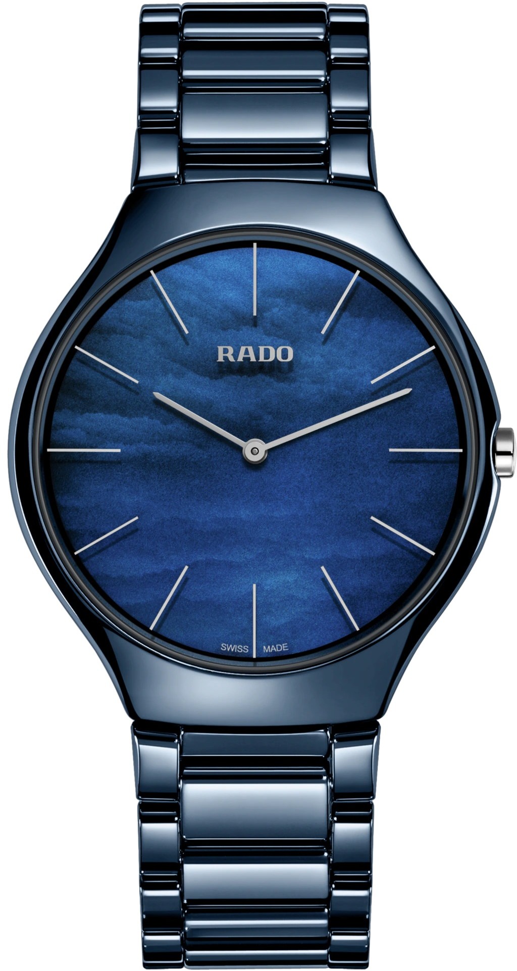 Rado True Thinline Water R27005902 jsou elegantní unisex hodinky vyrobené ze speciálního materiálu High-Tech Ceramic v modré barvě. Díky tomuto materiálu jsou hodinky lehké, hypoalergenní a odolné vůči poškrábání. Ultratenké pouzdro hodinek má průměr 39 milimetrů a tloušťku pouhých 5 milimetrů. Modrý číselník inspirovaný vodou je chráněn odolným safírovým sklem s oboustrannou antireflexní vrstvou. Pohon hodinek zajišťuje švýcarský quartzový strojek R420. Hodinky disponují vodotěsností 3 ATM a jsou tedy odolné proti vlhkosti, dešti a při mytí rukou.