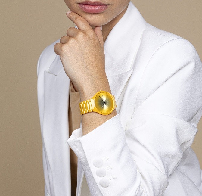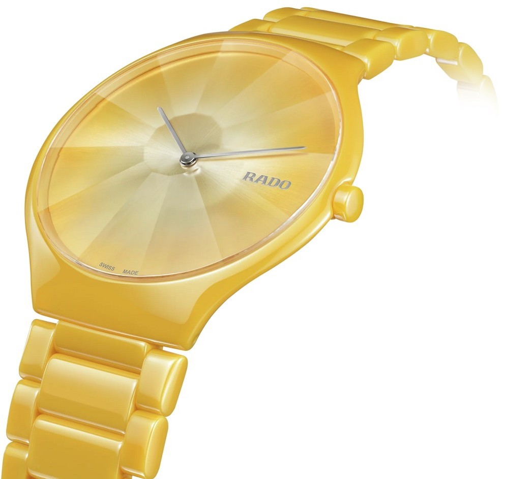 Rado True Thinline Great Gardens of the World Chapter 5 R27122252 jsou elegantní unisex hodinky vyrobené ze speciálního materiálu High-Tech Ceramic ve žluté barvě. Díky tomuto materiálu jsou hodinky lehké, hypoalergenní a odolné vůči poškrábání. Ultratenké pouzdro hodinek má průměr 39 milimetrů a tloušťku pouhých 6,3 milimetru. Žlutý číselník inspirovaný létem je chráněn odolným safírovým sklem. Pohon hodinek zajišťuje švýcarský quartzový strojek R420. Hodinky disponují vodotěsností 3 ATM a jsou tedy odolné proti vlhkosti, dešti a při mytí rukou.