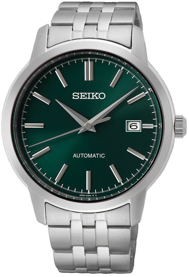 Kolekce hodinek Seiko Automatic v sobě zahrnuje pánské mechanické hodinky s automatickým nátahem, jejichž chod je zajištěn strojkem 4R35 s rezervou nátahu 41 hodin a ukazatelem data. Elegantní styl hodinek podtrhuje číselník s efektem slunečního brusu a vícečlánkový ocelový náramek.