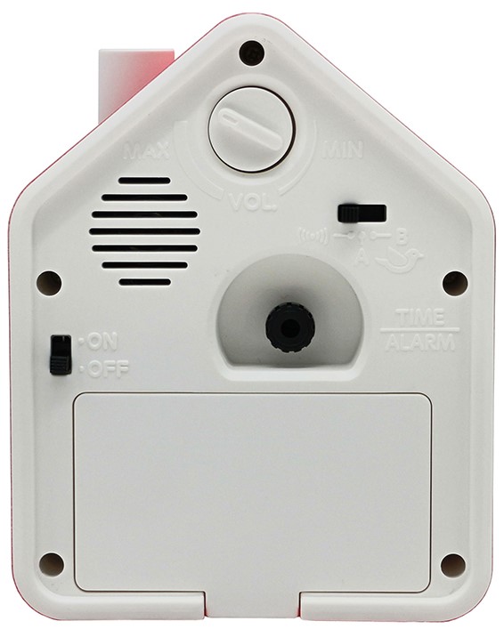 Funkce:  Tichý plynulý chod vteřinové ručičky, Volitelný alarm (2 ptačí písně/pípání), Funkce opakovaného buzení, Ovládání hlasitosti
