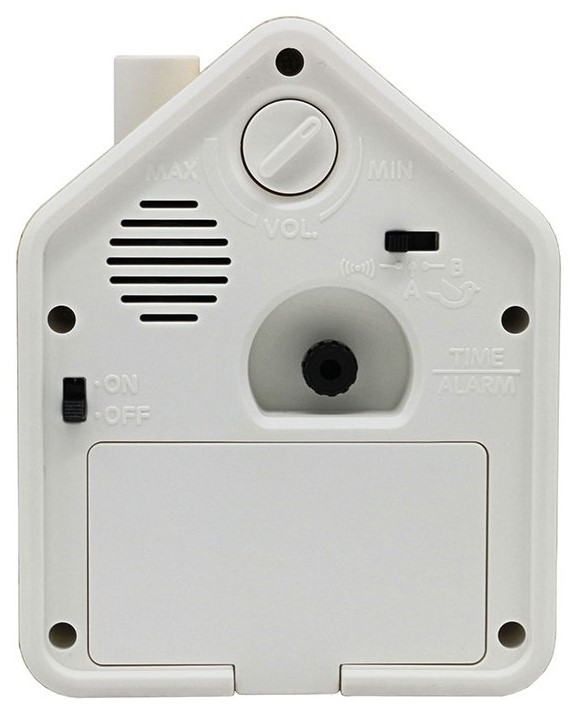 Funkce:  Tichý plynulý chod vteřinové ručičky, Volitelný alarm (2 ptačí písně/pípání), Funkce opakovaného buzení, Ovládání hlasitosti