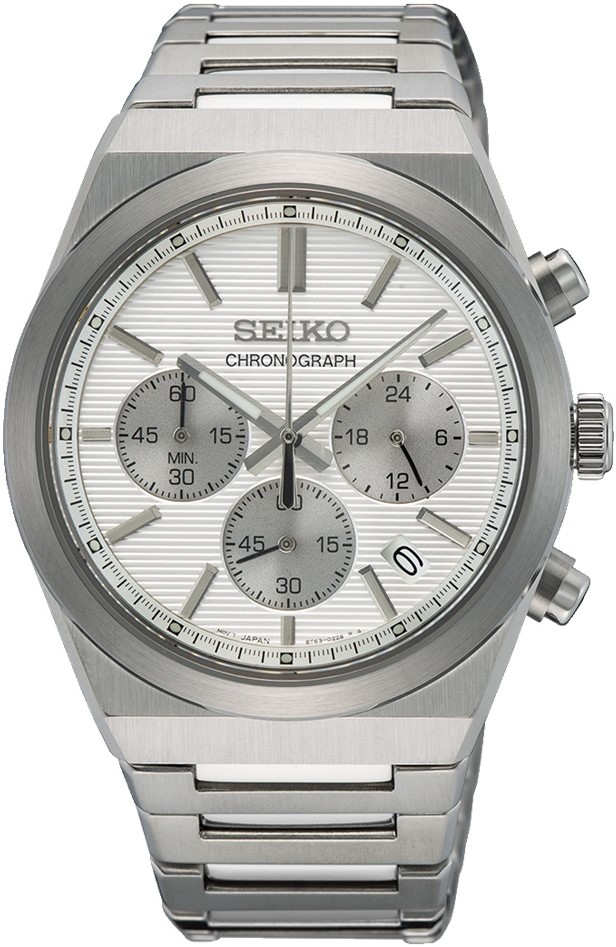 Pánské bateriové hodinky Seiko Quartz Chronograph SSB451P1 na ocelovém náramku v kombinací brusu a lesku. Pouzdro z nerezové oceli má průměr 40 milimetrů. Strukturovaný bílý číselník s datumovkou a stříbrnými subciferníky s funkcí stopek a ukazatelem času ve 24hodinovém formátu je chráněn odolným safírovým sklem. Ručičky jsou pokryty luminiscenčním nátěrem LumiBrite, který garantuje perfektní čitelnost za zhoršených světelných podmínek. Pohon hodinek zajišťuje spolehlivý quartzový strojek 8T63. Vodotěsnost hodinek činí 10 ATM a jsou tedy vhodné pro koupání nebo šnorchlování.