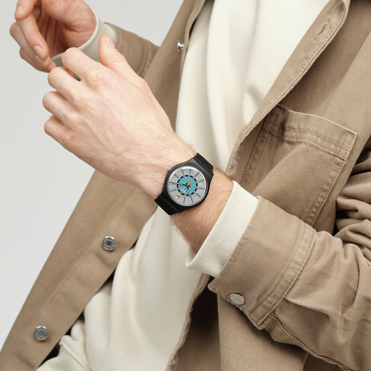 Materiál pouzdra hodinek je kombinace keramiky a plastu s biologickým původem.