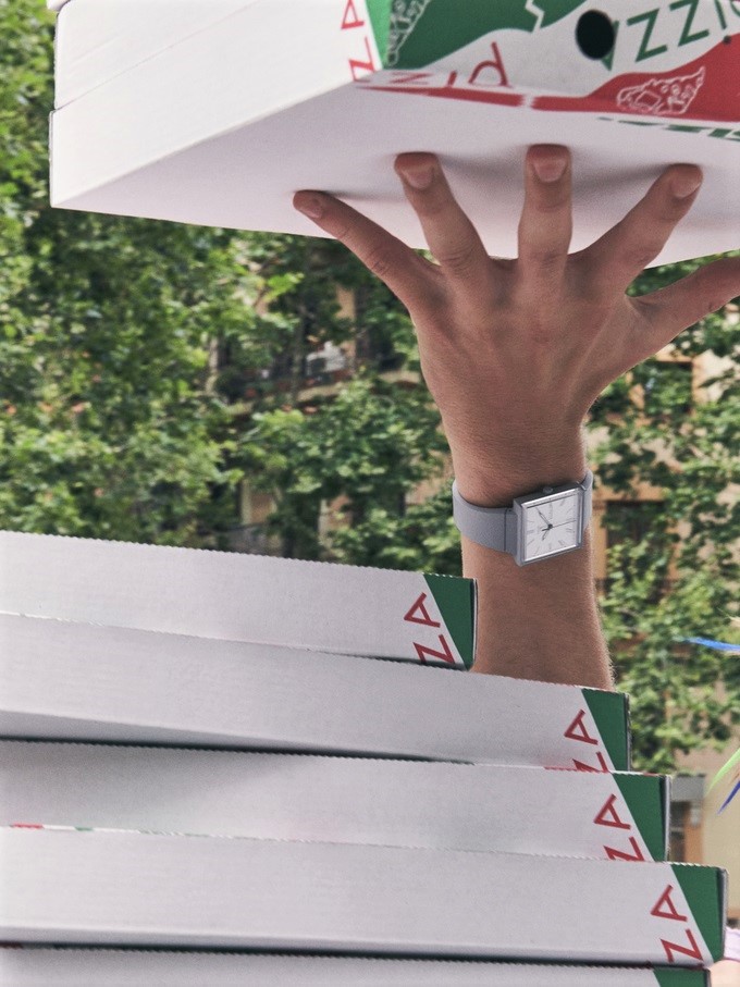 Materiál pouzdra hodinek je kombinace keramiky a plastu s biologickým původem a řemínek i sklíčko jsou vyrobeny z plastu s biologickým původem.