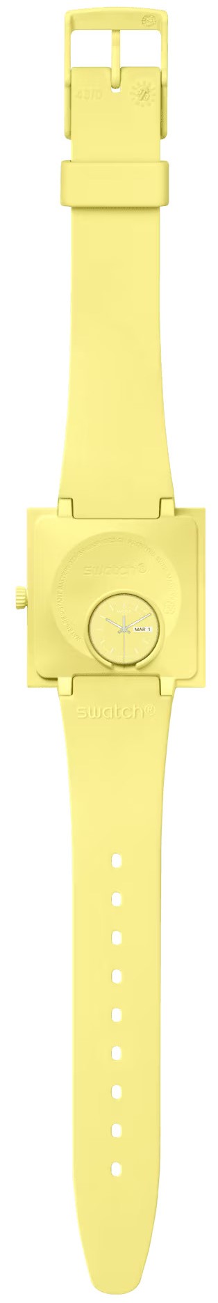 Materiál pouzdra hodinek je kombinace keramiky a plastu s biologickým původem, řemínek je z plastu s biologickým původem.